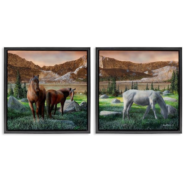 Country Valley Horses Grazing by Kevin Daniel 2 Pieces Black Floater Frame Animal Graphic Art Print 25 in. x 25 in.