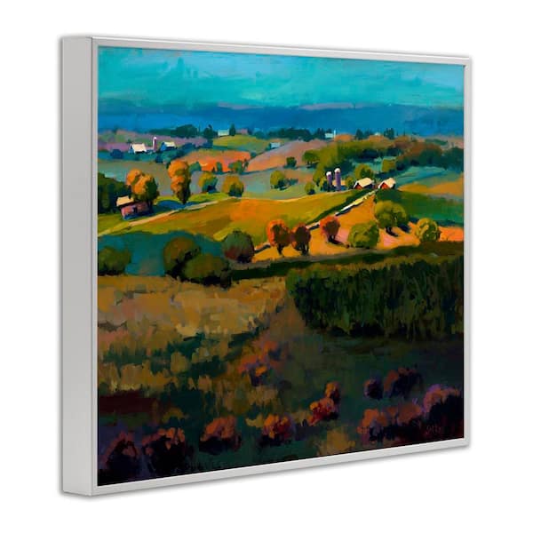 Countryside Farms Landscape by Sri Rao White Framed Nature Giclee Art Print 24 in. x 30 in.