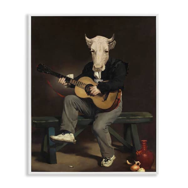 Cow Playing Guitar by Alicia Longley White Framed Music Giclee Art Print 30 in. x 24 in.