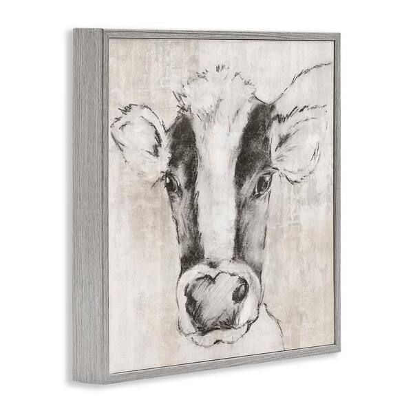 Cow Sketch Impression by Eli Jones Gray Framed Animal Giclee Art Print 12 in. x 12 in.