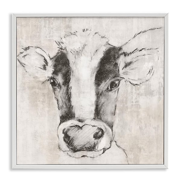 Cow Sketch Impression by Eli Jones White Framed Animal Giclee Art Print 17 in. x 17 in.