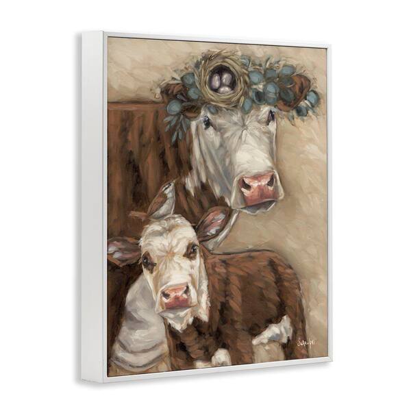 Cow and Calf with Bird Nest by Sara G. Designs White Framed Animal Giclee Art Print 30 in. x 24 in.