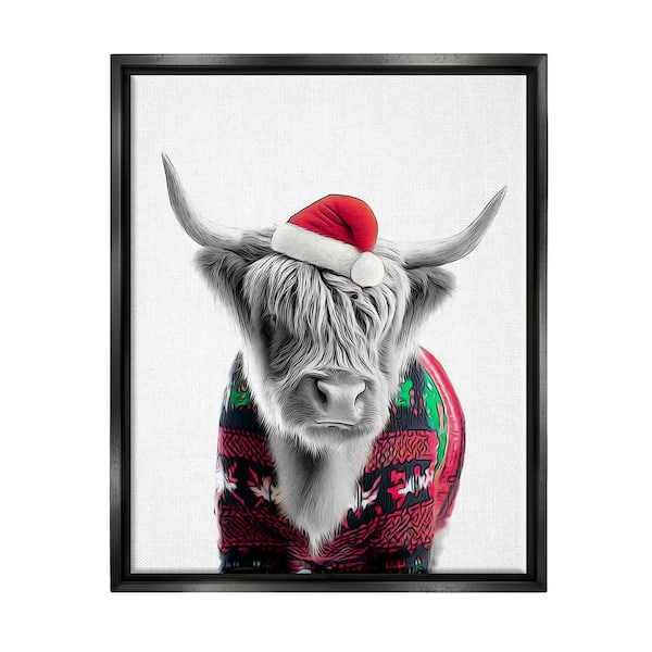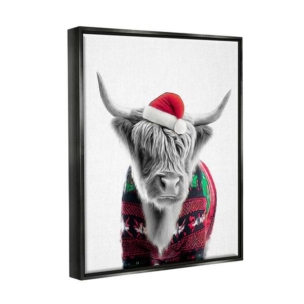 Cow in Christmas Sweater by Annalisa Latella 1 Piece Floater Frame Graphic Print Animal Poster Art Print 31 in. x 25 in.