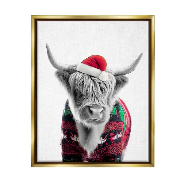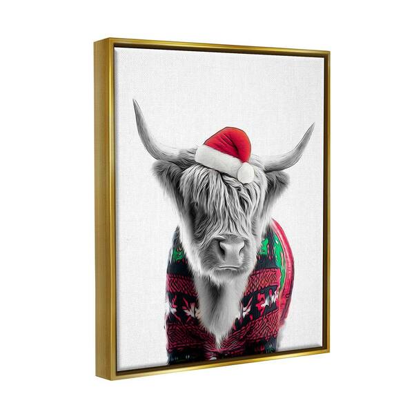 Cow in Christmas Sweater by Annalisa Latella 1-Piece Floater Frame Graphic Print Animal Poster Art Print 31 in. x 25 in.