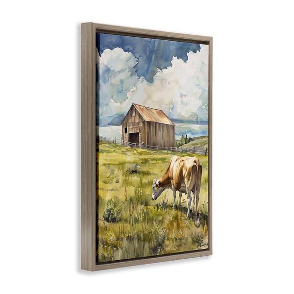 Cow in Vast Field by Franklyn Gregory Brown Floater Frame Nature Graphic Art Print 31 in. x 21 in.