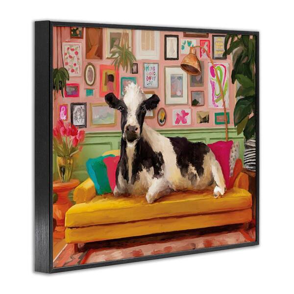 Cow in Whimsical Maximalist House by Kamdon Kreations Black Framed Animal Giclee Art Print 11 in. x 14 in.