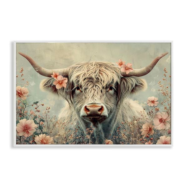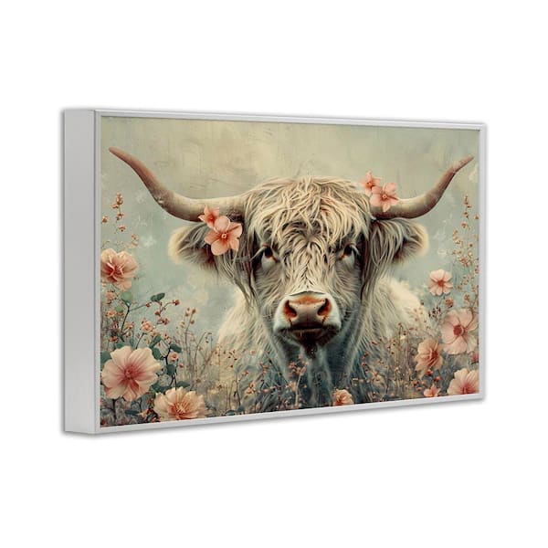 Cow with Cherry Blossoms by LSR Design Studio White Framed Animal Giclee Art Print 12 in. x 18 in.
