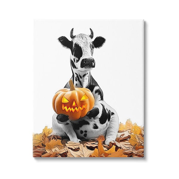 Cow with Jack-o-Lantern by Annalisa Latella 1-Piece Unframed Graphic Print Animal Poster Art Print 30 in. x 24 in.