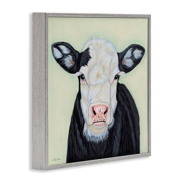 Cow with Spotted Ears by Ashley Justice Gray Framed Animal Giclee Art Print 24 in. x 24 in.