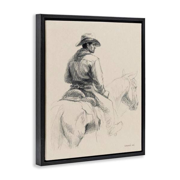 Cowboy & Horse Sketch by Danhui Nai Black Floater Frame People Graphic Art Print 31 in. x 25 in.
