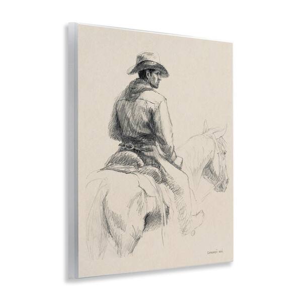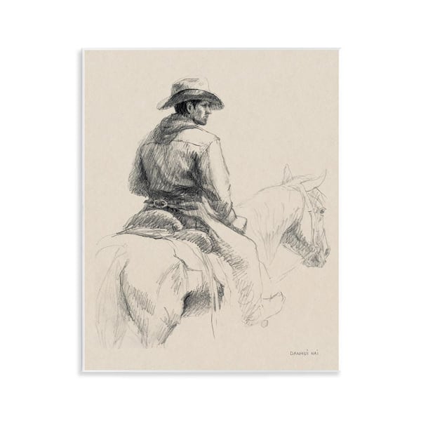 Cowboy & Horse Sketch by Danhui Nai Unframed People Graphic Art Print 14 in. x 11 in.