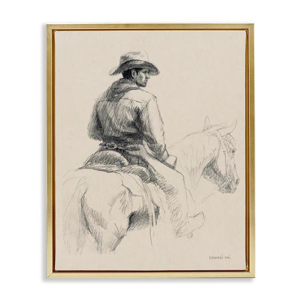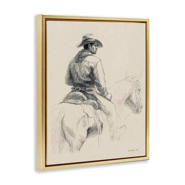 Cowboy and Horse Sketch by Danhui Nai Gold Floater Frame People Graphic Art Print 21 in. x 17 in.