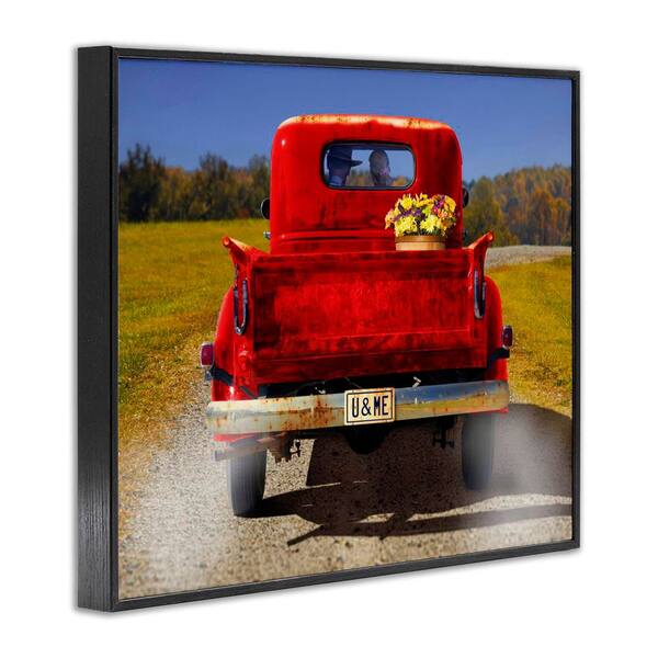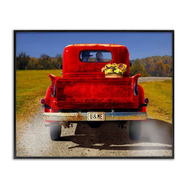 Cowboy in Red Truck by Michael Quackenbush Black Framed Typography Giclee Art Print 11 in. x 14 in.