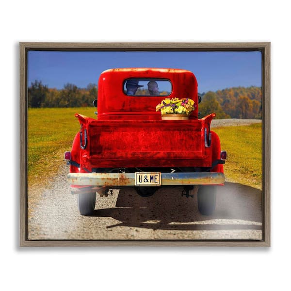 Cowboy in Red Truck by Michael Quackenbush Brown Floater Frame Typography Graphic Art Print 25 in. x 31 in.