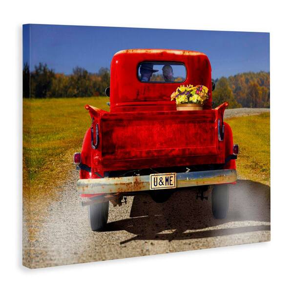 Cowboy in Red Truck by Michael Quackenbush Unframed Typography Graphic Art Print 36 in. x 48 in.