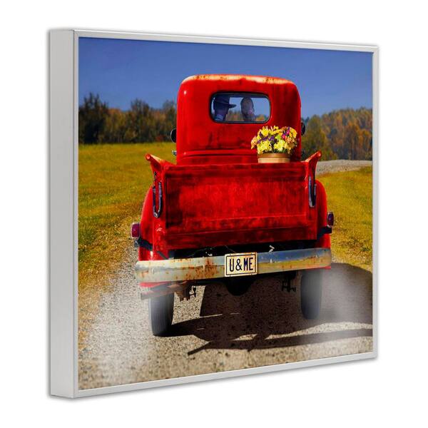 Cowboy in Red Truck by Michael Quackenbush White Framed Typography Giclee Art Print 24 in. x 30 in.