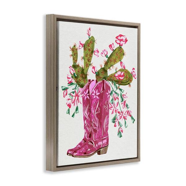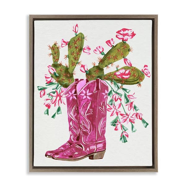 Cowgirl Boots and Cactus by Melissa Wang Brown Floater Frame Nature Graphic Art Print 31 in. x 25 in.