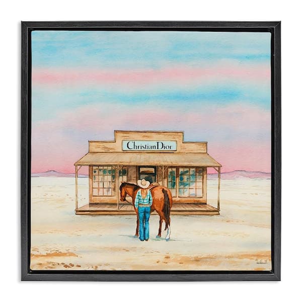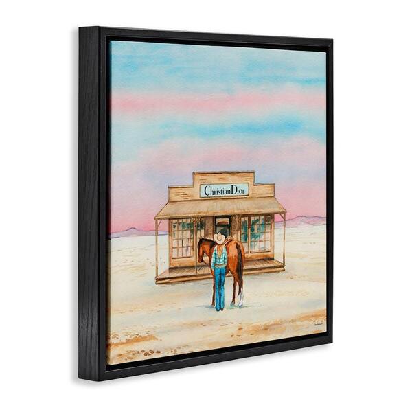 Cowgirl & Horse Shopping by Amanda Greenwood Black Floater Frame Nature Graphic Art Print 18 in. x 18 in.