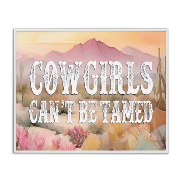 Cowgirls Can't Be Tamed by Lettered and Lined White Framed Nature Giclee Art Print 11 in. x 14 in.