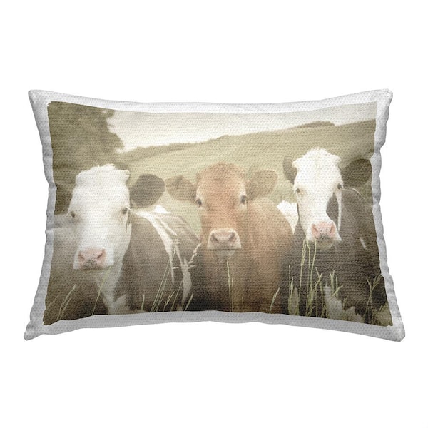 Cows in Rural Field Brown Rectangular Outdoor Throw Pillow