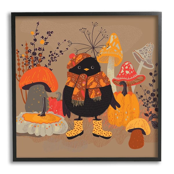 Cozy Crow with Mushrooms by Verbrugge Watercolor 1 Piece Framed Graphic Print Animal Poster Art Print 24 in. x 24 in.