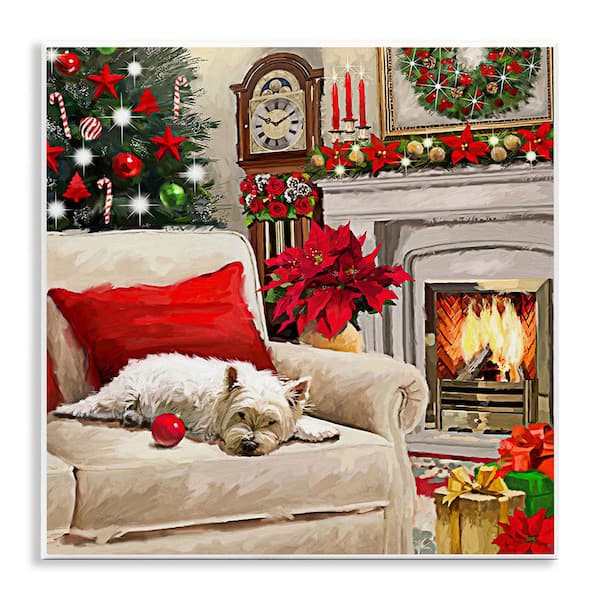 Cozy Dog by Holiday Mantle by Adam Sanderson 1-Piece Unframed Graphic Print Animal Poster Art Print 12 in. x 12 in.