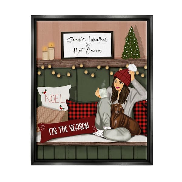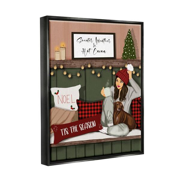 Cozy Girl with Christmas Phrase by Saba Rauf 1 Piece Floater Frame Graphic Print People Poster Art Print 31 in. x 25 in.