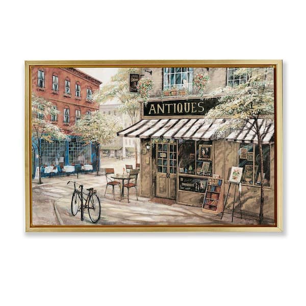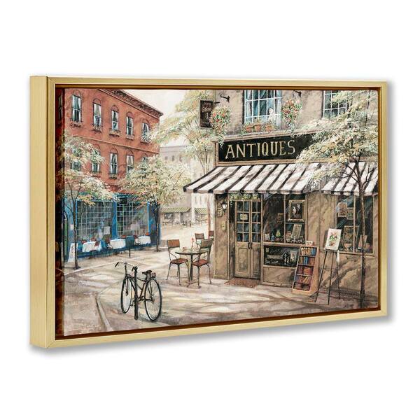 Cozy Town Antiques Shop by Ruane Manning Gold Floater Frame Architecture Graphic Art Print 21 in. x 31 in.