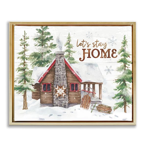 Cozy Winter Cabin Phrase by Courtney Morgenstern 1-Piece Floater Frame Graphic Print Nature Art Print 21 in. x 17 in.
