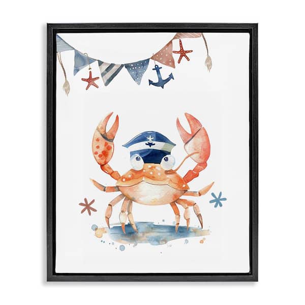 Crab in Sailor Hat by LSR Design Studio Black Floater Frame Animal Graphic Art Print 21 in. x 17 in.