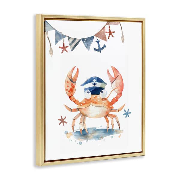 Crab in Sailor Hat by LSR Design Studio Gold Floater Frame Animal Graphic Art Print 21 in. x 17 in.