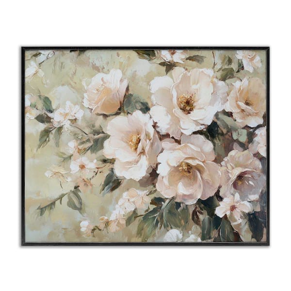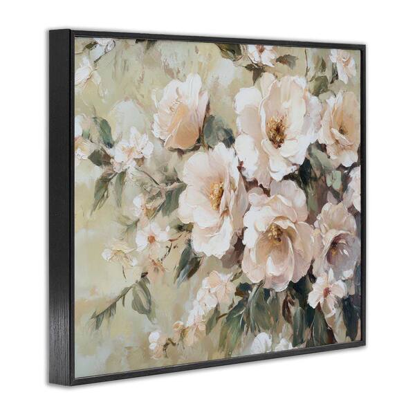 Cream Dynamic Florals by Petal Prints Design Black Framed Nature Giclee Art Print 11 in. x 14 in.
