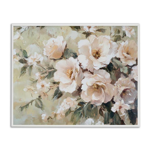 Cream Dynamic Florals by Petal Prints Design White Framed Nature Giclee Art Print 16 in. x 20 in.