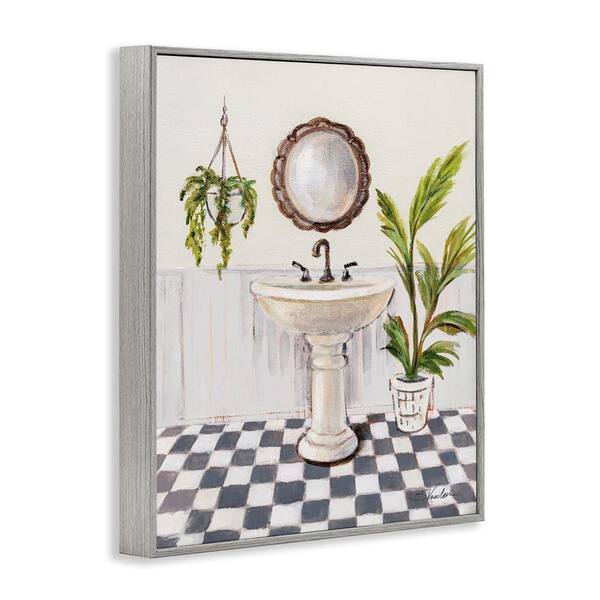 Crisp Bathroom with Plants by Silvia Vassileva Gray Framed Nature Giclee Art Print 30 in. x 24 in.