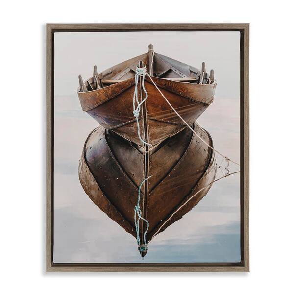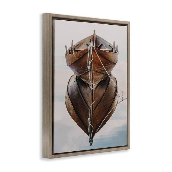 Crisp Rowboat Reflection by LSR Design Studio Brown Floater Frame Typography Graphic Art Print 31 in. x 25 in.