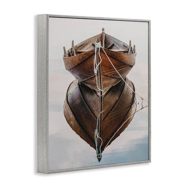 Crisp Rowboat Reflection by LSR Design Studio Gray Framed Typography Giclee Art Print 30 in. x 24 in.