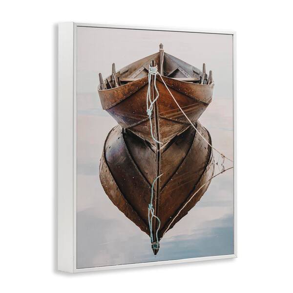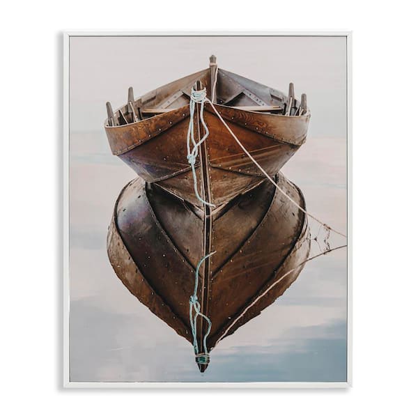 Crisp Rowboat Reflection by LSR Design Studio White Framed Typography Giclee Art Print 30 in. x 24 in.