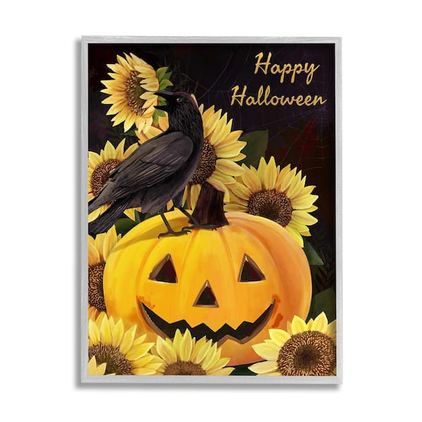 Crow on Jack-o-Lantern by Diane Neukirch 1-Piece Framed Graphic Print Animal Poster Art Print 30 in. x 24 in.