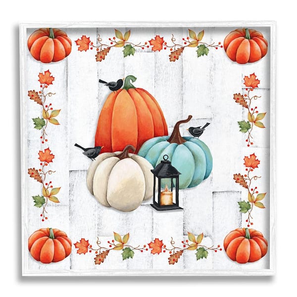 Crows on Fall Pumpkins by Emma Leach 1-Piece Framed Graphic Print Nature Poster Art Print 17 in. x 17 in.