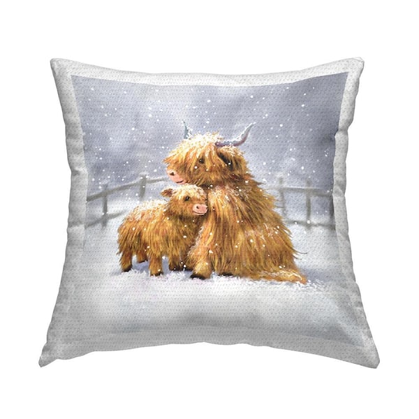 Cuddling Cattle Snowflakes Farm Tan Square Outdoor Throw Pillow