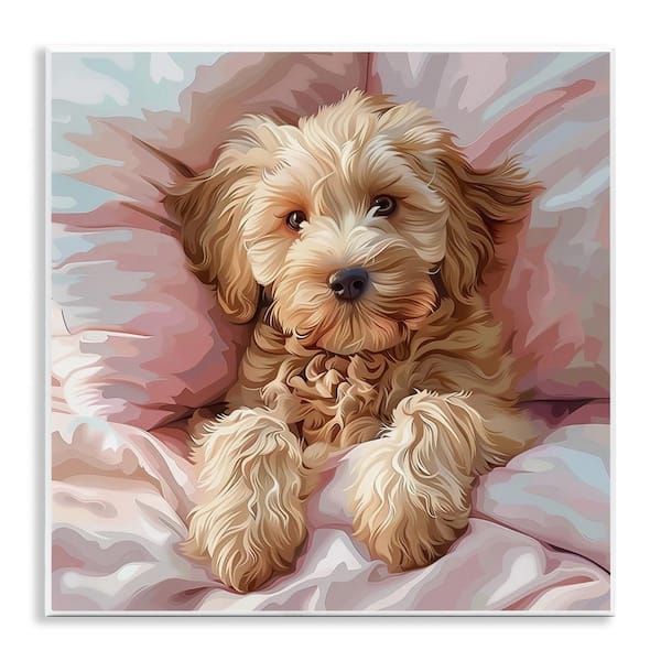 Cuddling Labradoodle Bed by Jim Baldwin Unframed Animal Graphic Art Print 12 in. x 12 in.