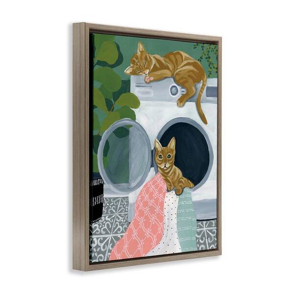Cuddling Laundry Cats by Yvette St. Amant Brown Floater Frame Animal Graphic Art Print 31 in. x 25 in.