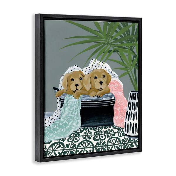 Cuddling Laundry Dogs by Yvette St. Amant Black Floater Frame Animal Graphic Art Print 31 in. x 25 in.