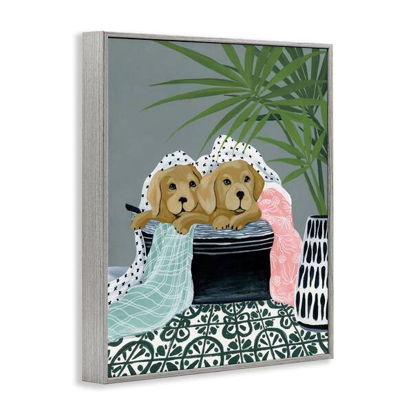 Cuddling Laundry Dogs by Yvette St. Amant Gray Framed Animal Giclee Art Print 20 in. x 16 in.