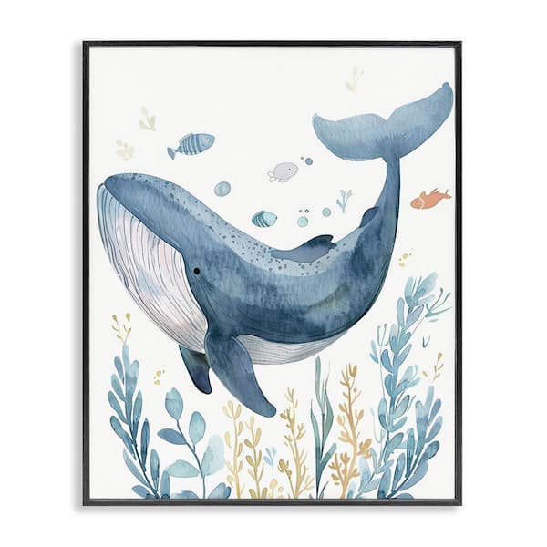 Curved Blue Whale by Franklyn Gregory Black Framed Animal Giclee Art Print 30 in. x 24 in.