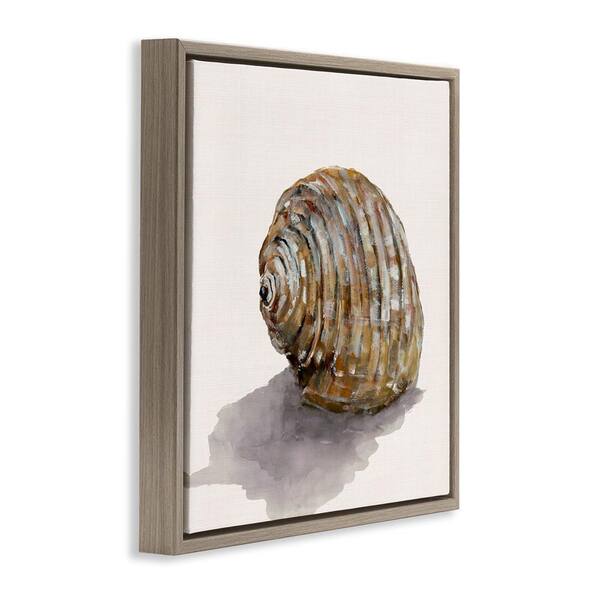 Curved Seashell on Beige by Jacob Q Brown Floater Frame Coastal Graphic Art Print 18 in. x 18 in.