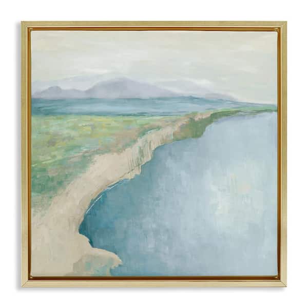 Curving Shoreline Landscape by Jacob Q Gold Floater Frame Coastal Graphic Art Print 18 in. x 18 in.