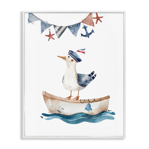 Cute Sailor Seagull by LSR Design Studio White Framed Animal Giclee Art Print 14 in. x 11 in.