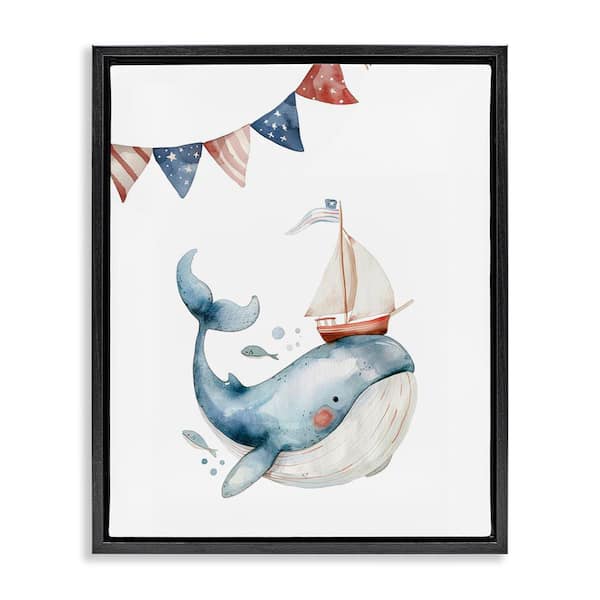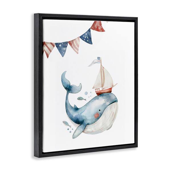 Cute Sailor Whale by LSR Design Studio Black Floater Frame Animal Graphic Art Print 21 in. x 17 in.