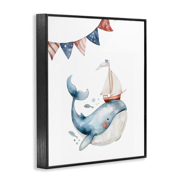 Cute Sailor Whale by LSR Design Studio Black Framed Animal Giclee Art Print 14 in. x 11 in.